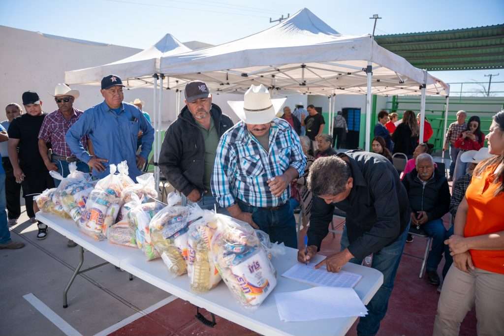 El evento se llevó a cabo en el Centro Cívico de la colonia Independencia, donde la presidenta municipal, acompañada del Coordinador de Desarrollo Rural en la Región, Juan Antonio Velasco, realizó la entrega de apoyos alimentarios a familias provenientes de distintos ejidos de Castaños.