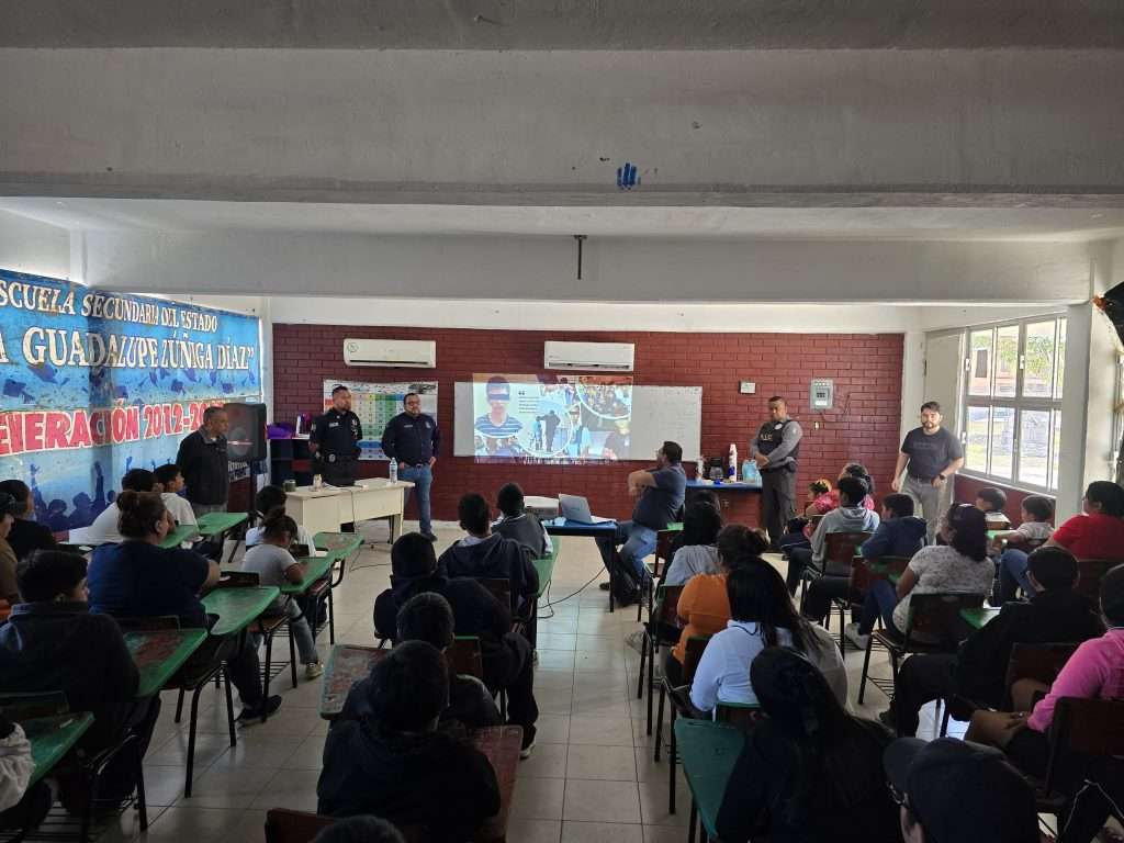 Como parte de las acciones de proximidad social que impulsa el alcalde José Feliciano “Chano” Díaz, se llevó a cabo una plática informativa en la Secundaria Estatal Técnica María Guadalupe Zúñiga Díaz, en de Sabinas.