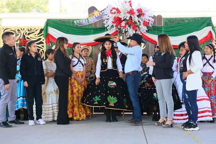 El alcalde de Sabinas, José Feliciano “Chano” Díaz Iribarren, acudió a la Escuela Secundaria del Estado General Francisco Murguía, ubicada en la colonia Sarabia, para participar en la ceremonia del “Ensombreramiento de la Adelita 2025”, una tradición que fortalece la identidad cultural y conmemora el espíritu de la Revolución Mexicana.