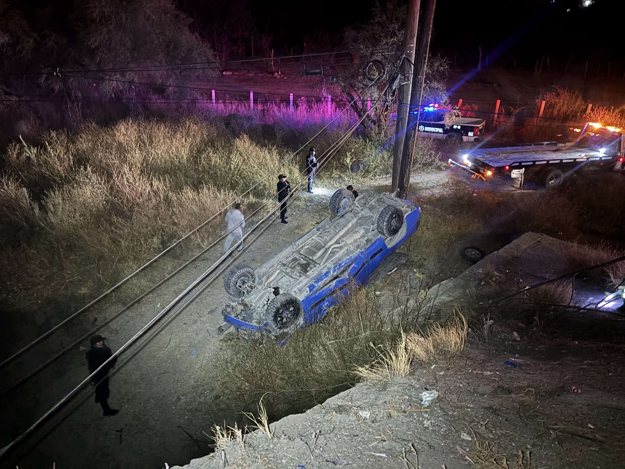 Un aparatoso accidente se registró la noche del viernes en el municipio de Castaños, cuando el conductor de una camioneta Chevrolet Silverado, color azul, perdió el control de su vehículo y terminó volcado tras caer de uno de los llamados “puentes cuates”. El percance ocurrió alrededor de las 21:30 horas, a la altura del Boulevard Santa Cecilia.