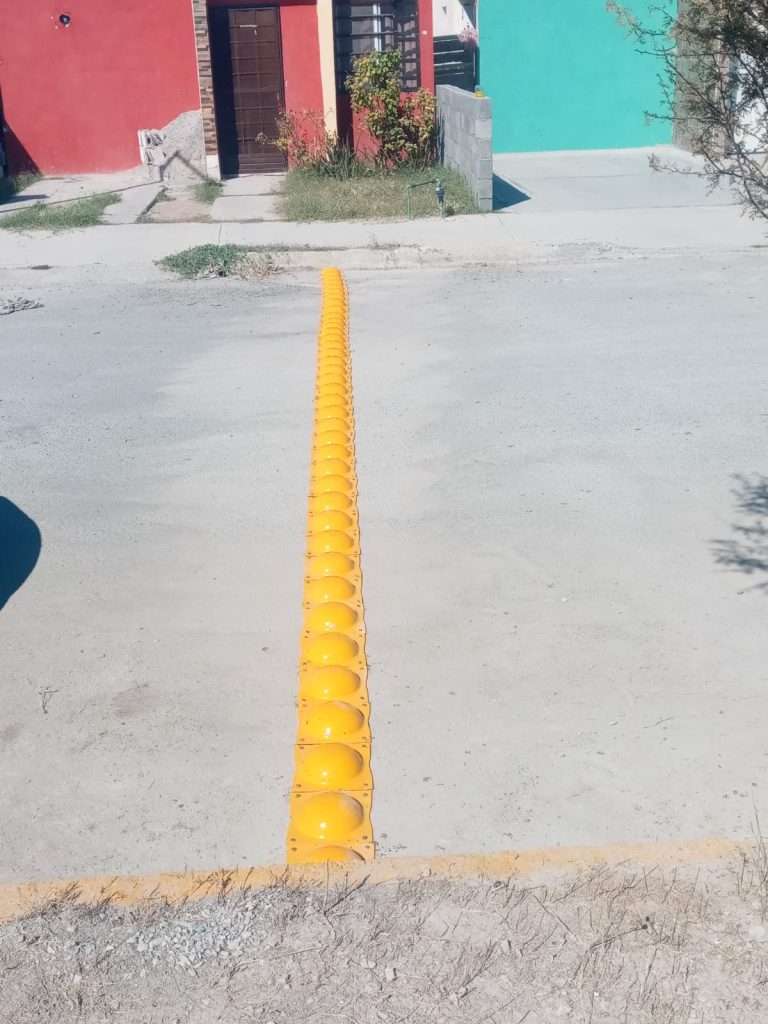 ● En la colonia Huizachal, específicamente en la calle Tunalar y su cruce con Aeropuerto, se instaló un segundo tendido de 46 boyas, además de señales de alto y señalización preventiva de reductor de velocidad, atendiendo las solicitudes directas de las y los vecinos.