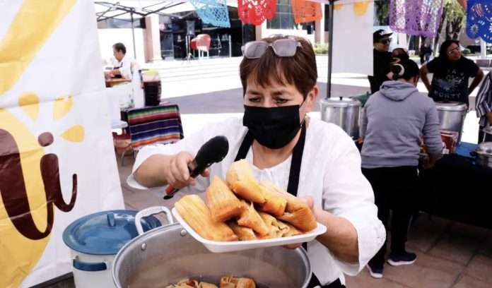 Desde las 11 a. m., decenas de familias comenzaron a llegar para disfrutar de las preparaciones elaboradas por las cocineras tradicionales de la ciudad, quienes desplegaron tamales en hoja de acelga, de pollo, puerco, queso, frijol y delicias dulces como frutos rojos o plátano con crema de avellanas.