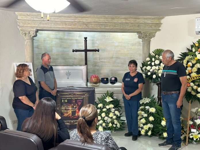 Durante e velorio, realizado en la Funeraria Martínez de la colonia El Pueblofamiliares, fundadores y miembros del cuerpo de bomberos rindieron un emotivo homenaje al teniente con aplausos, una lona con su imagen en funciones, así como su casco, gorra y la moscoba del Pentatlón colocados sobre el féretro. Fue despedido como lo que fue: un símbolo de servicio y vocación.
