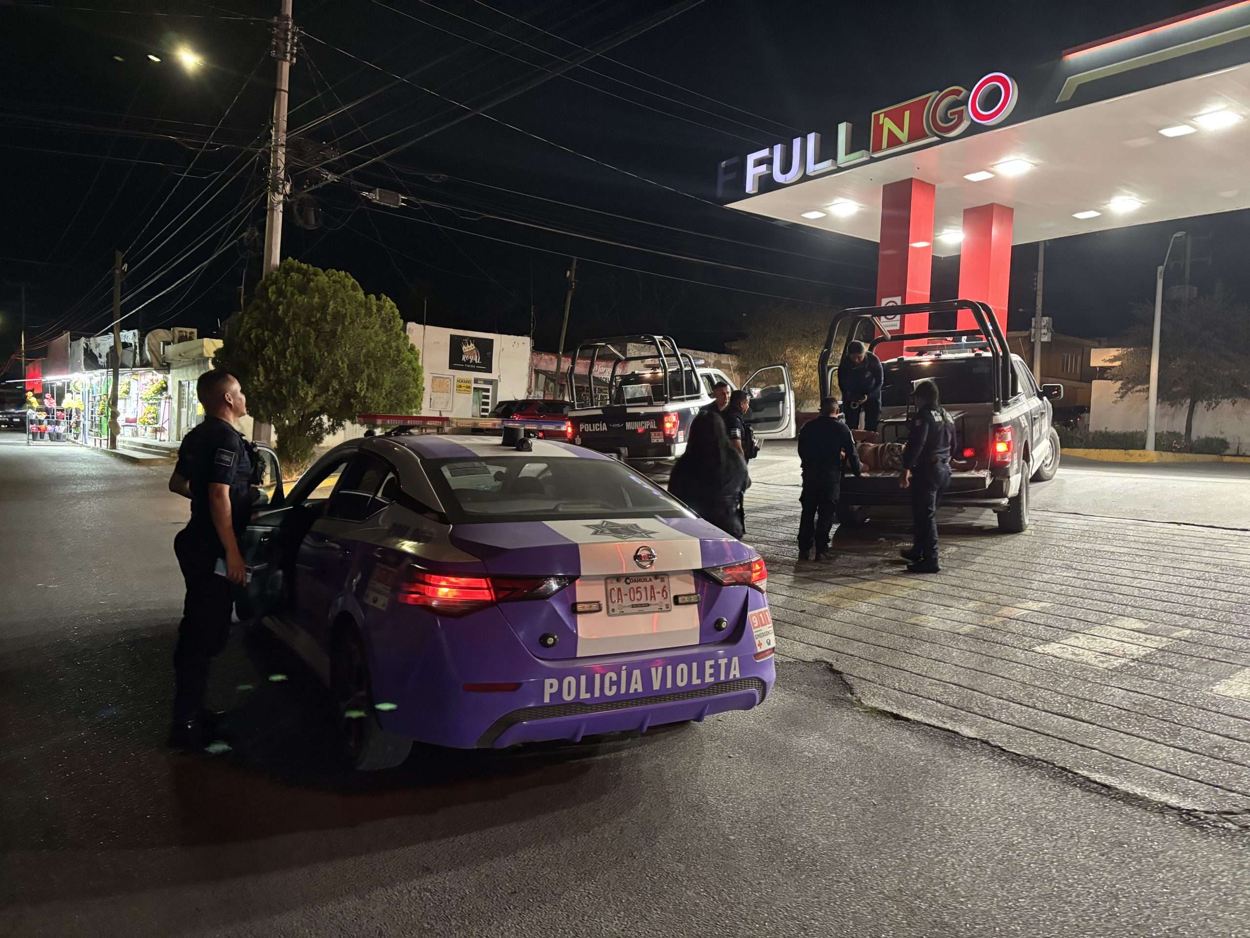 Los hechos ocurrieron cerca de la medianoche, en el cruce de las calles Hidalgo y Garita, donde trabajadores de la estación de servicio solicitaron apoyo de las autoridades al no poder controlar la situación.