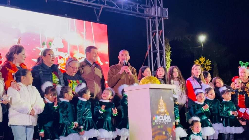 A través del programa ‘’Acuña luz y magia’’ 2025, el Gobierno Municipal y el DIF Acuña llevaron a cabo con éxito una edición más del tradicional encendido del pino navideño en la macroplaza de esta frontera.