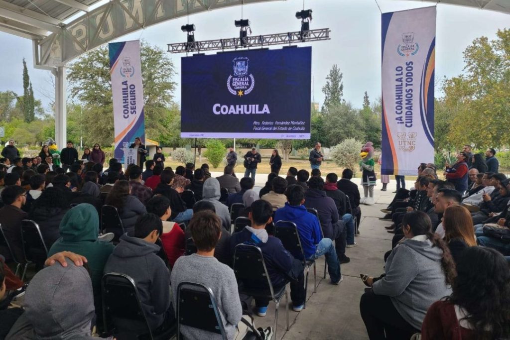 El Fiscal destacó que conocer cómo funciona el modelo de seguridad del estado ayuda a los estudiantes a comprender su entorno y el papel de las instituciones encargadas de la protección ciudadana. “Aquí están las y los responsables de cuidar las carreteras, los municipios, las colonias del estado de Coahuila, para que todos estemos seguros”, dijo ante los universitarios, subrayando la importancia de que la población entienda quiénes integran el sistema de seguridad y cómo opera.