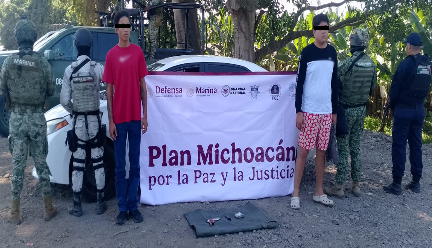 -En Arteaga y Coahuayana, elementos de GN, Ejército Mexicano y Policía Estatal detuvieron a dos hombres a bordo de un vehículo, les aseguraron un fusil Barret, un arma corta, dos cargadores y 11 cartuchos.