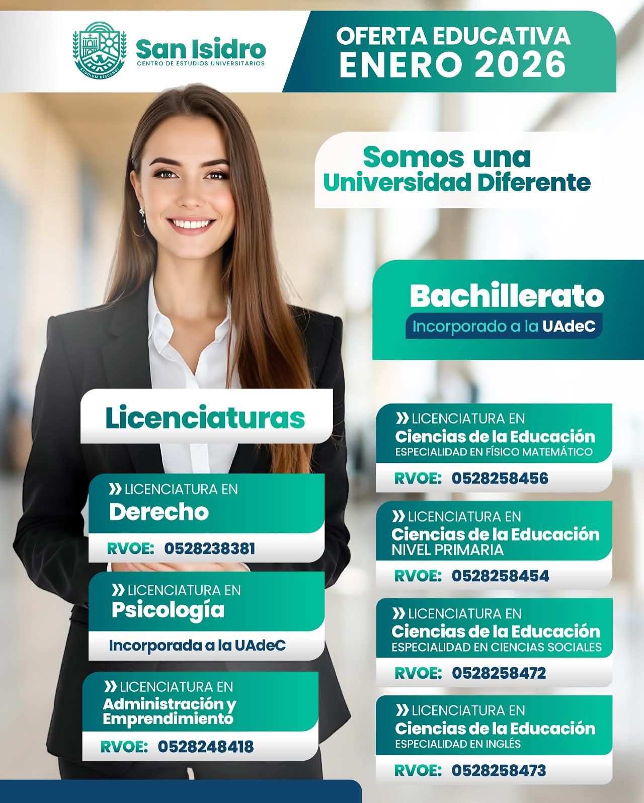 Finalmente, invitó a las personas interesadas en conocer la oferta educativa 2026 a consultar las redes sociales oficiales del Centro Universitario San Isidro, donde se publicará información actualizada, así como los datos de contacto para resolver dudas. Añadió que él mismo está disponible para orientar y asesorar a quienes deseen continuar su formación académica.