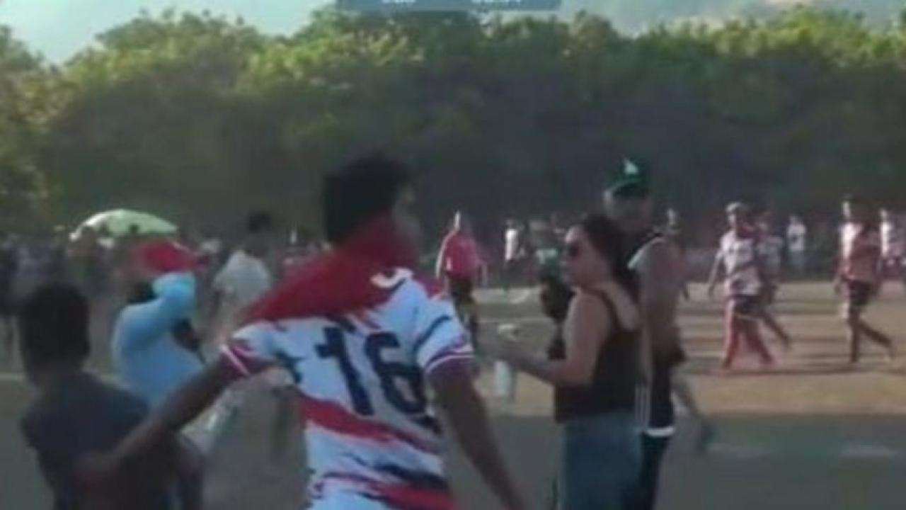 Durante la transmisión en vivo del partido se escucharon varias detonaciones de arma de fuego. Las imágenes captaron la reacción inmediata de los asistentes, quienes corrieron por la cancha en busca de resguardo. Jugadores y espectadores intentaron alejarse de la zona para ponerse a salvo. Debido a la situación, el partido fue suspendido de manera inmediata.