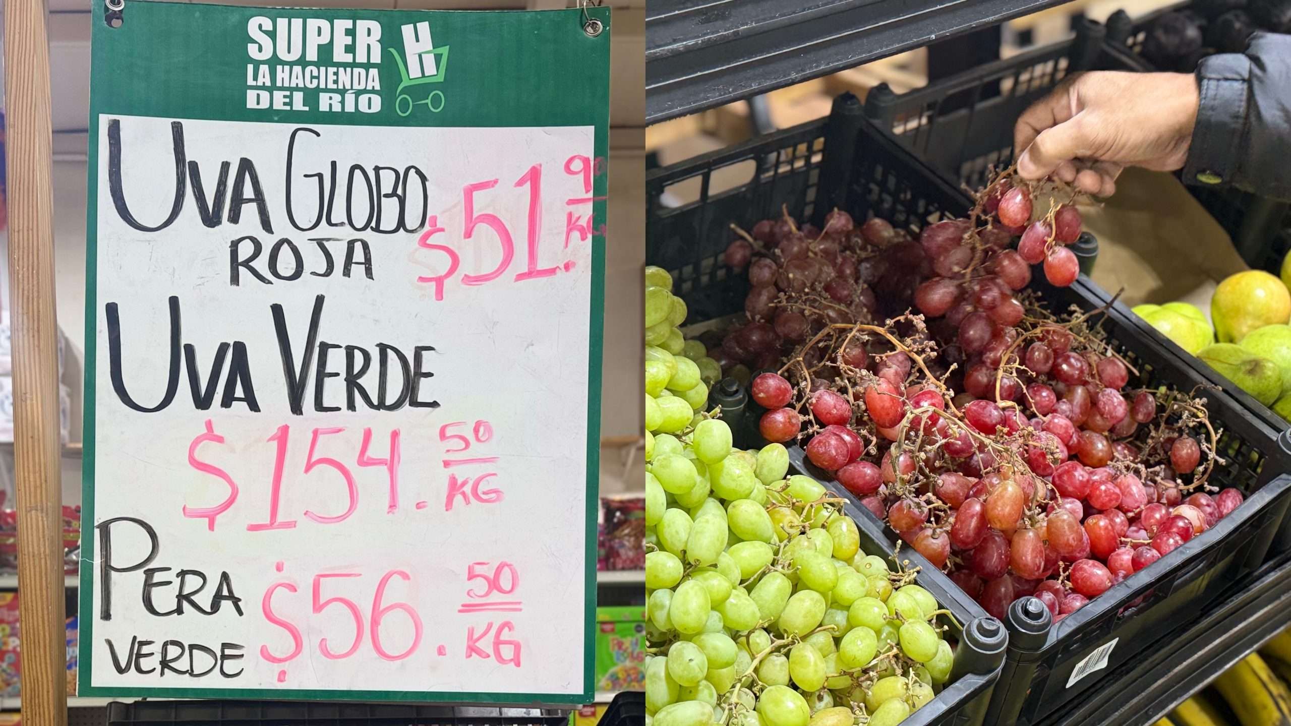 La frutería La Hacienda del Río, en Monclova, mantiene el kilo de uva roja en 51.90 pesos, el encargado del establecimiento Roberto Leija, aseguro que han sostenido los precios sin aumentos y los balancean pensando en la economía de los clientes que acuden a realizar sus compras de fin de año
