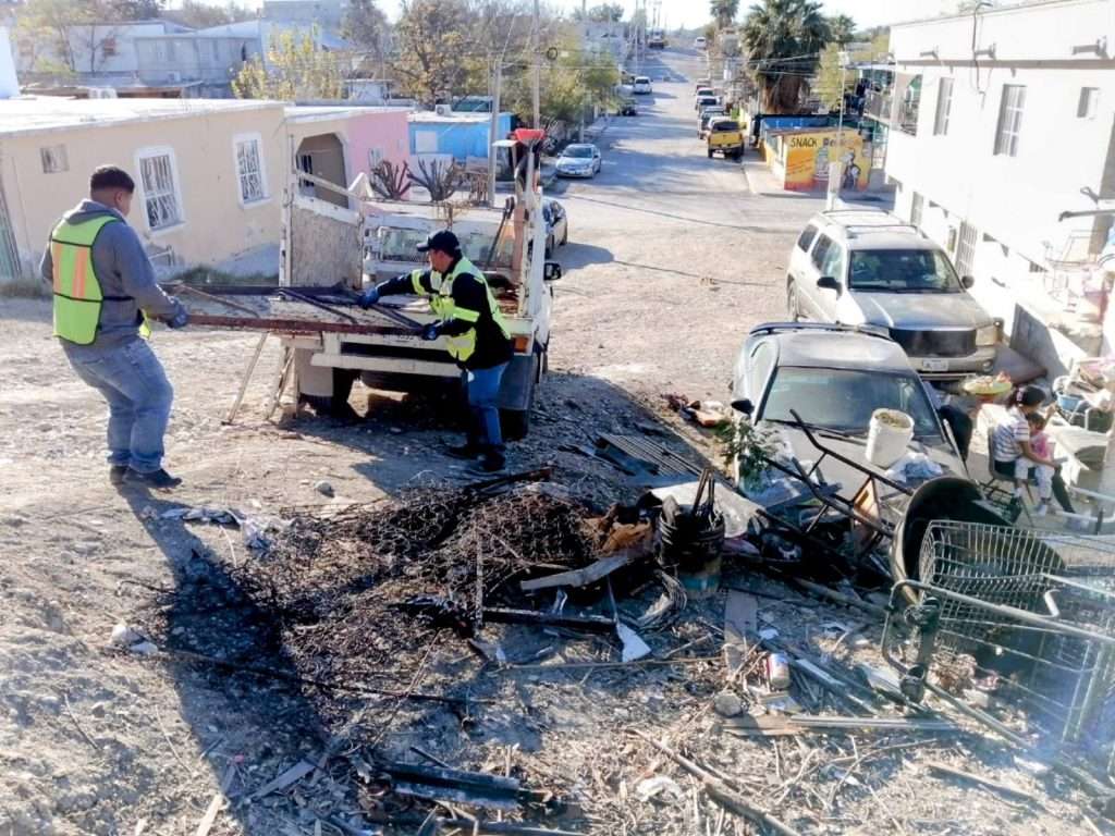 Una de las cuadrillas ambientales de la dependencia acudió a la calle 13 de la colonia Tierra y Esperanza, donde brindó apoyo a una familia que sufrió el incendio total de su vivienda.