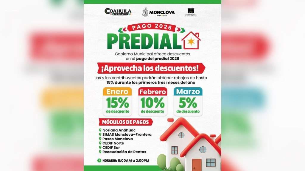 El alcalde Carlos Villarreal destacó que una mayor recaudación permite fortalecer los servicios y la infraestructura de la ciudad: “Invitamos a las y los monclovenses a aprovechar estos descuentos. Cuando más personas cumplen con el pago del predial, el municipio cuenta con mayores recursos para seguir invirtiendo en obras y servicios para nuestra gente”, señaló.