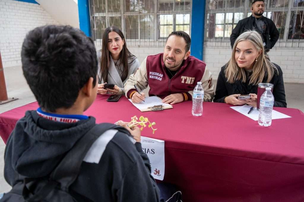 La directora general de Desarrollo Social Municipal, Cintia Villarreal, destacó el compromiso del Ayuntamiento para fortalecer la educación y el bienestar de los jóvenes, destacando que la instrucción del alcalde es mantener una presencia permanente en las escuelas.