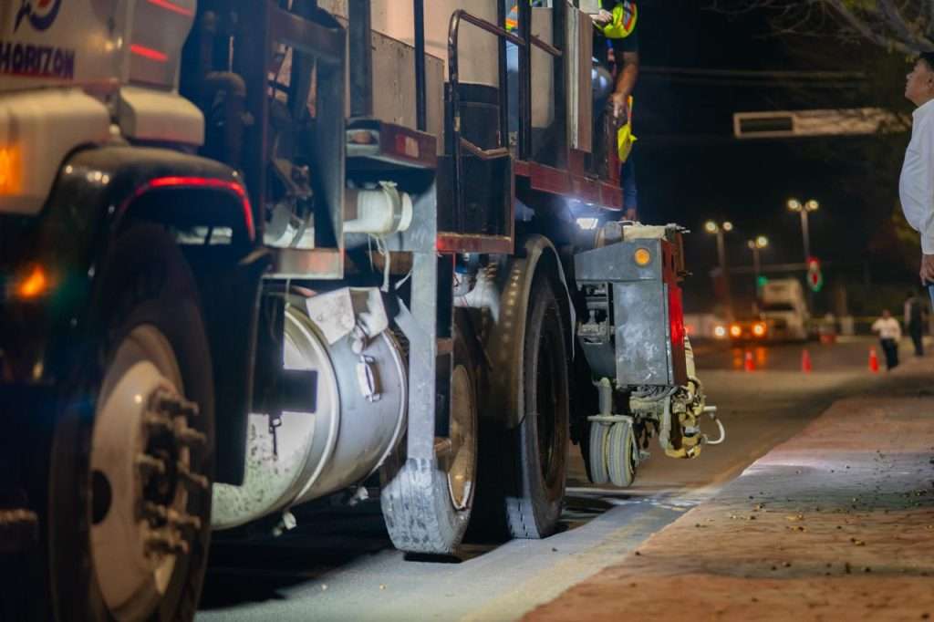 El alcalde explicó que este tipo de pintura permite una delimitación más clara y resistente de los carriles, lo que contribuye directamente a mejorar el orden del tránsito y la seguridad de conductores y peatones.
