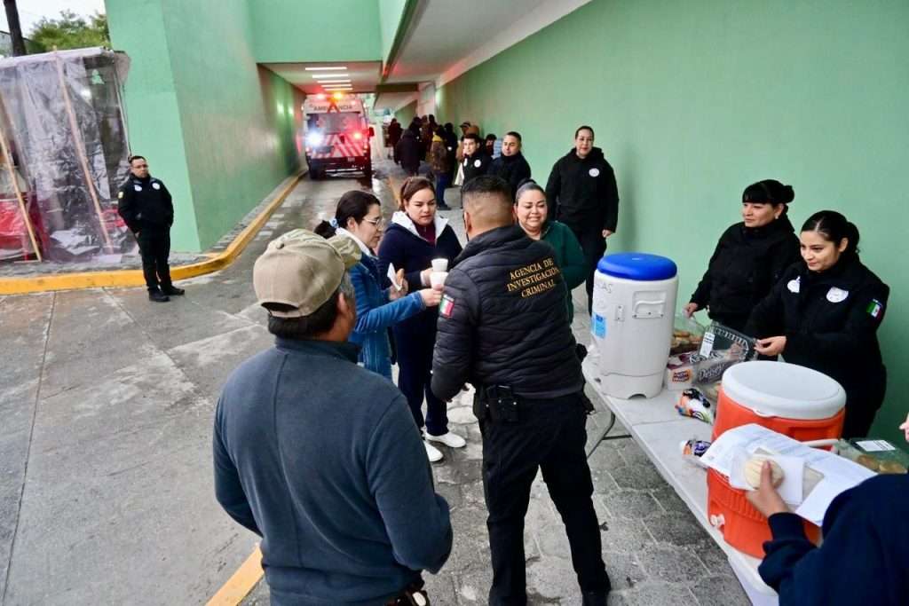 Sin importar las bajas temperaturas registradas, personal de la dependencia estatal acudió al Hospital Amparo Pape y al Hospital General de Zona No. 7 del IMSS, donde ofrecieron alimentos calientes no solo a los familiares que permanecen largas horas en espera de noticias de sus seres queridos, sino también al personal médico y de enfermería que cumple con su labor diaria.