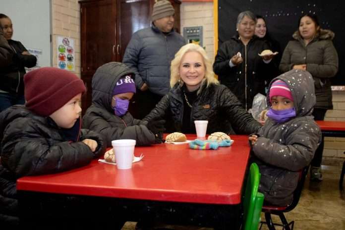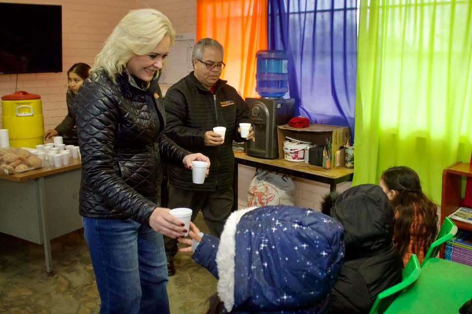 Durante la visita, la presidenta municipal compartió chocolate caliente, además de realizar la entrega de cobijas a los habitantes de este sector, como parte de las acciones preventivas para proteger la salud de la población ante el clima frío que se ha registrado en la región.