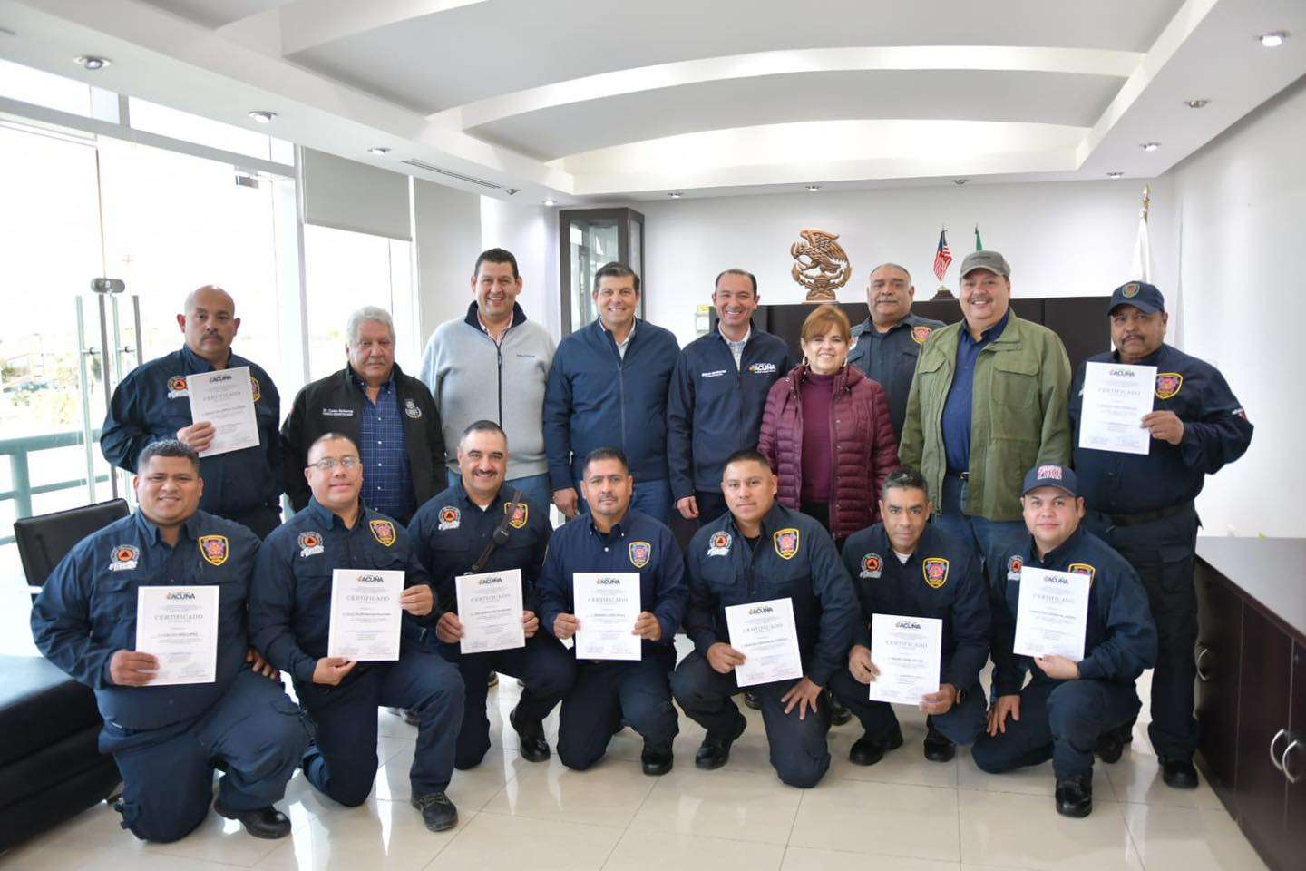 Durante el evento, el edil destacó la disciplina, el valor y la vocación de servicio que distinguen al heroico cuerpo de bomberos de Acuña, a quienes calificó como los mejores bomberos de México.