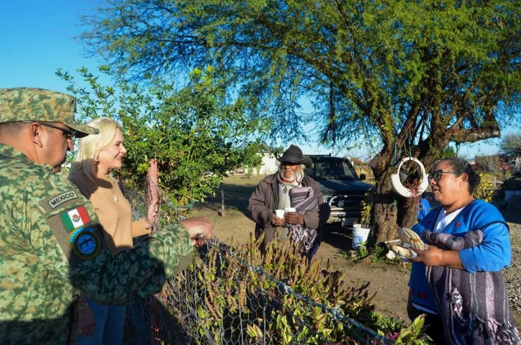 “Dando continuidad al Operativo Invierno, que impulsamos en equipo con nuestro amigo el gobernador Manolo Jiménez Salinas, visitamos el ejido Nogalitos junto al 14.º Regimiento de Caballería Motorizada, llevando abrigo y bebidas calientes a las familias”, expresó Laura Jiménez Gutiérrez.