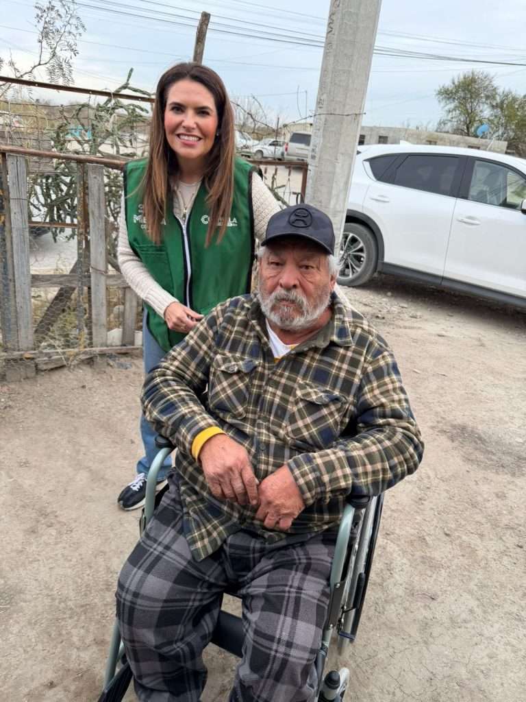 Sabinas, Coahuila.– Como parte de las acciones de apoyo social que impulsa el Gobierno del Estado a través del programa Mejora, se realizó la entrega de una silla de ruedas a Don Juan, habitante de la colonia El Mimbre.