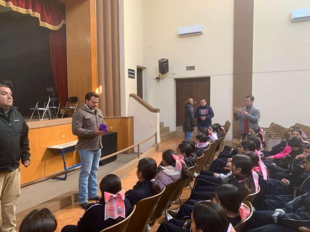 El jefe de la Jurisdicción Sanitaria No.3, Dr. Carlos Jiménez Villarreal encabezó la entrega de un total de 400 kits menstruales en la Secundaria Fortunato Gutierrez Cruz y 185 más para alumnas de la EBURR de Nueva Rosita.