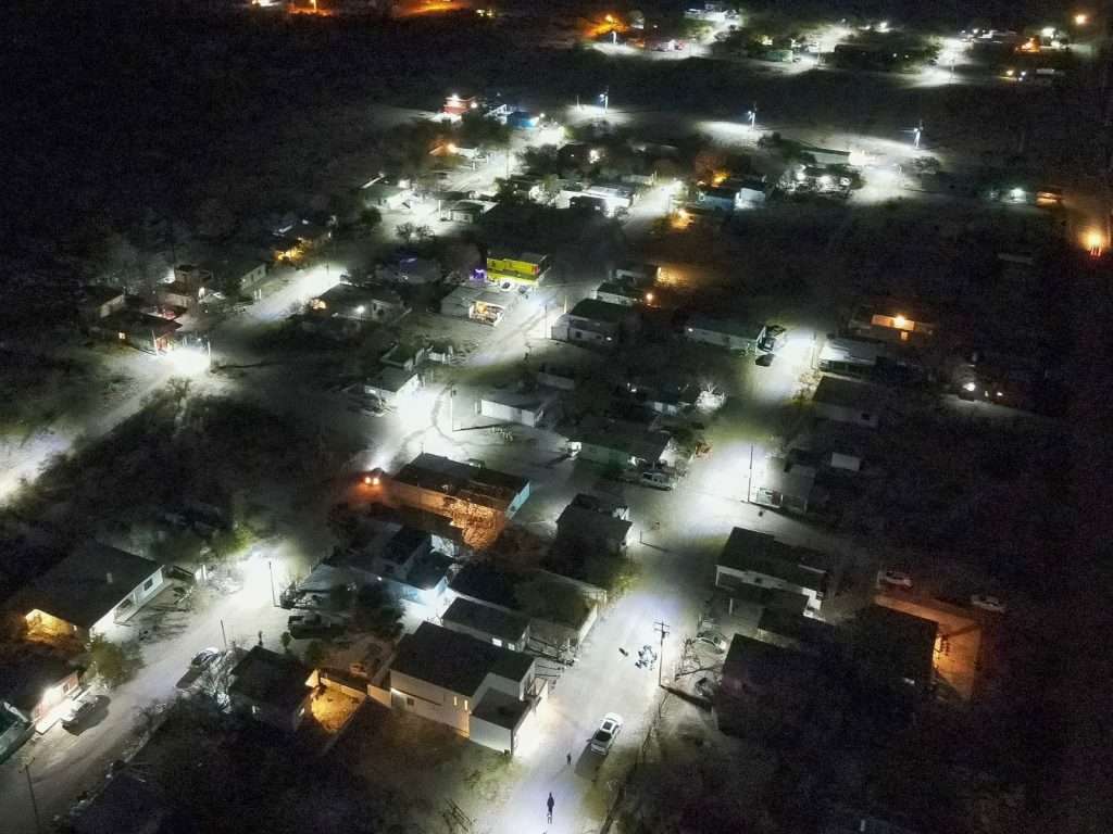 En la colonia Guillermo Hernández, los trabajos permitirán alcanzar el 100 por ciento de cobertura con luminaria LED. Mientras tanto, en la colonia Azteca se concluyó la instalación en la plaza pública y se avanzó en las calles aledañas. Esto brinda espacios mejor iluminados y más seguros para las familias.