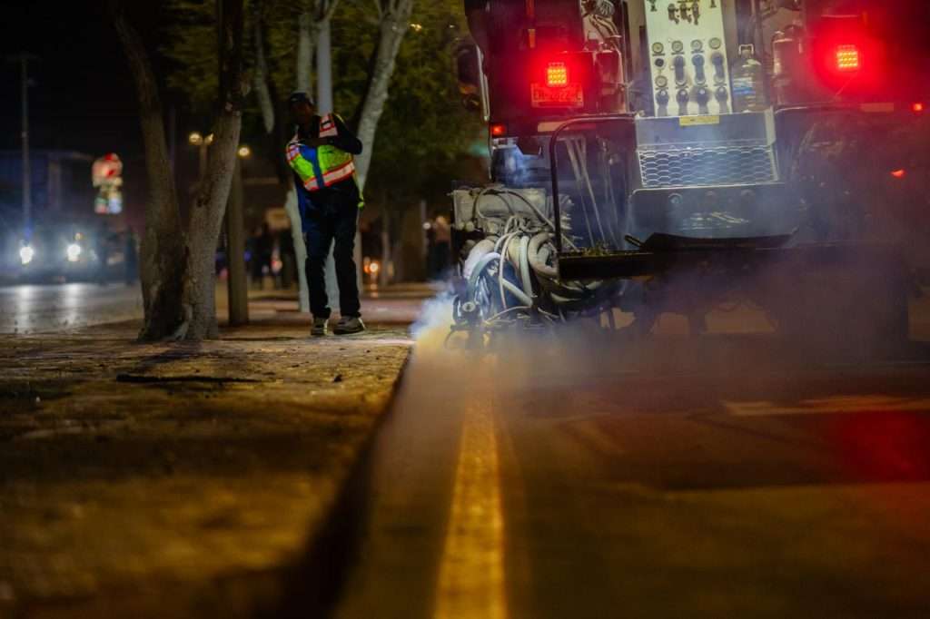 El funcionario explicó que la pintura utilizada en estos trabajos es termoplástica, un material especial que se aplica mediante calor y no funciona como una pintura convencional. “Es una pintura termoplástica, es un plástico especial que se derrite, y estas bajas temperaturas no nos permiten trabajar con ella”, detalló.
