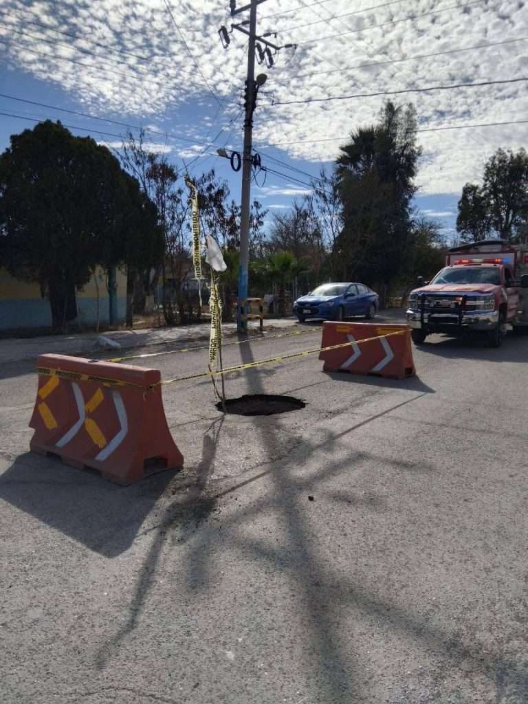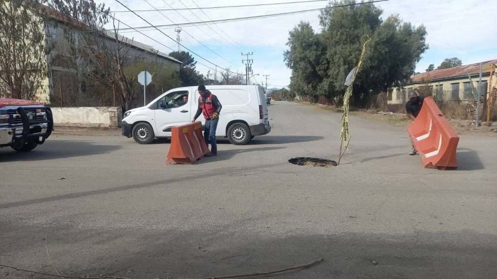 El Departamento de Protección Civil Municipal de Múzquiz, en coordinación con el Sistema Municipal de Aguas y Alcantarillado (SIMARC), atendió el reporte de un socavón registrado en la calle 5 de Febrero, cruce con calle Múzquiz, en la Villa de Palaú, derivado de un daño en la tubería subterránea.
