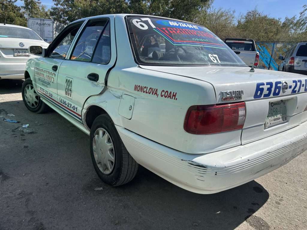 El vehículo involucrado fue un Nissan Tsuru blanco, marcado con el número económico 67, conducido por César Saúl, operador de la línea Taxímetro.