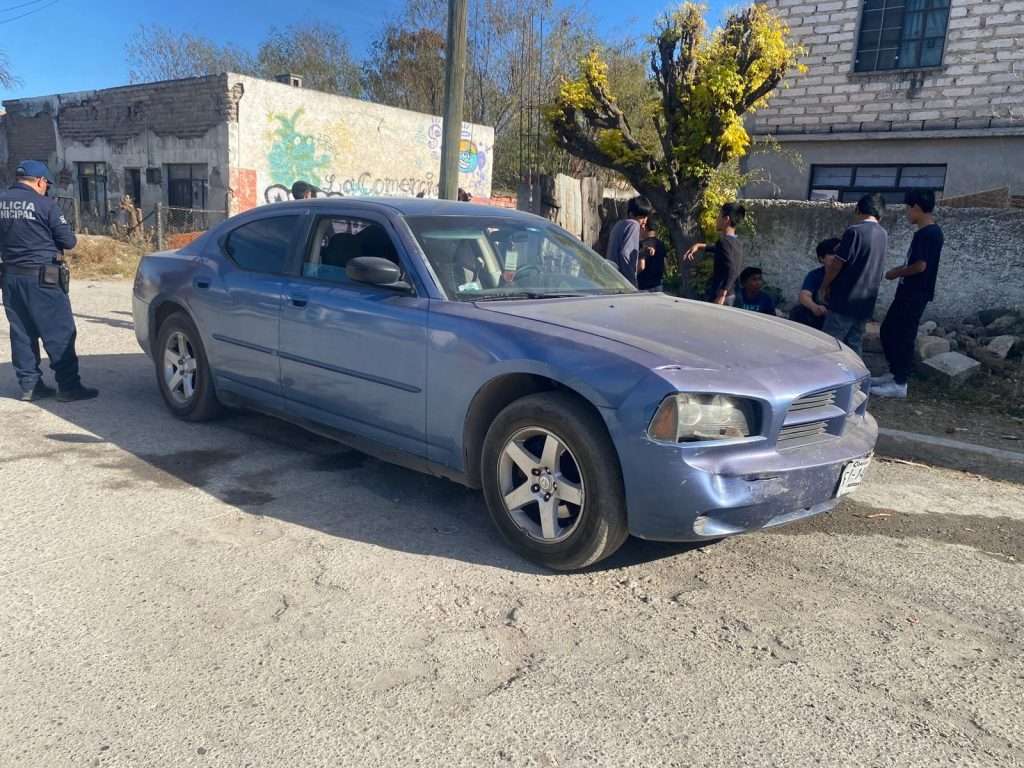 El percance se registró sobre la calle Hidalgo, donde una camioneta Chevrolet color gris impactó contra un automóvil Dodge Charger, provocando daños materiales de consideración.