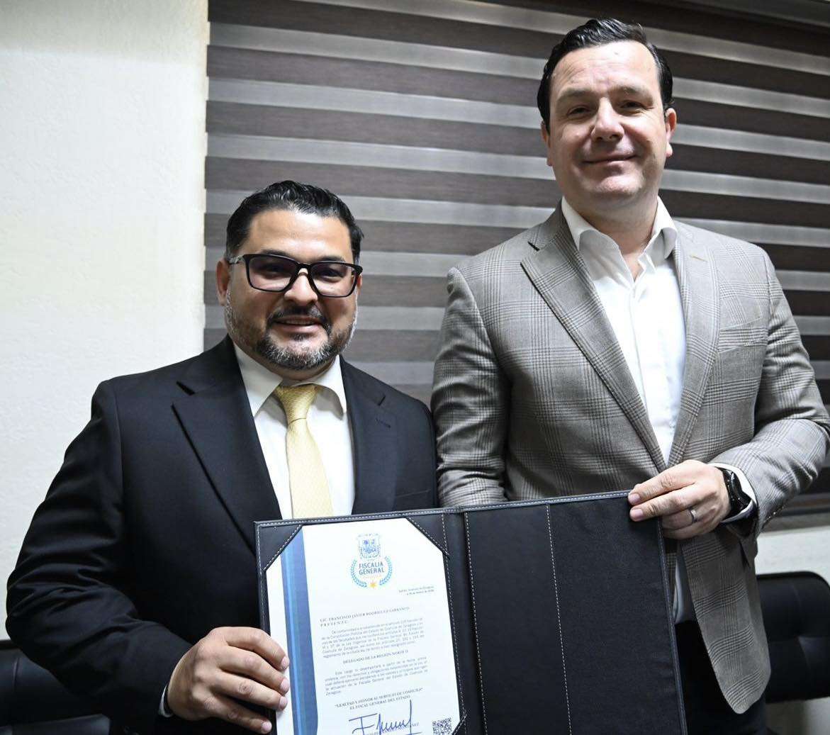 El fiscal general del Estado de Coahuila, Federico Fernández Montañez, realizó el nombramiento oficial de Francisco Javier Rodríguez Carranco, conocido como ‘’Balin’’, como nuevo titular de la fiscalía general del Estado en la Región Norte II, con sede en Acuña.