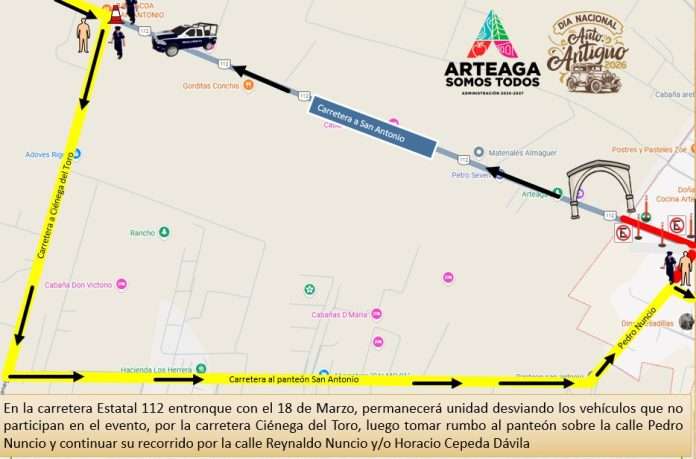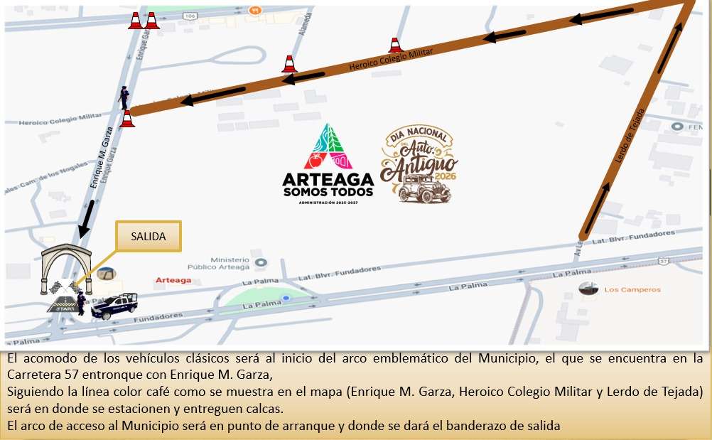 La administración municipal “Arteaga Somos Todos” informó que la jornada iniciará a las 08:00 horas con la salida del contingente de vehículos clásicos desde el arco de bienvenida, ubicado en la Carretera 57 y Enrique M. Garza, en la cabecera municipal.