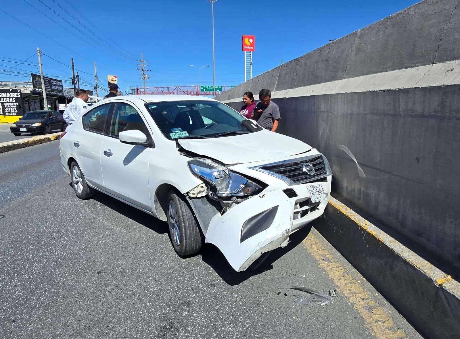 El conductor descendió del vehículo y comenzó a realizar señalamientos manuales para advertir a otros automovilistas, intentando prevenir un accidente mayor en zona de riesgo. Sin embargo, el tráfico denso generado en la vialidad tomó desprevenida a Andrea Ramírez, quien manejaba un Nissan Versa blanco en circulación normal sobre carril.