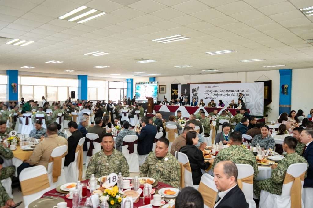 En el marco del 113 aniversario del Ejército Mexicano, se realizó un desayuno en honor a los hombres y mujeres que integran esta institución, en las instalaciones del 12 Regimiento de Caballería Motorizado. El alcalde Jacobo Rodríguez participó activamente en la ceremonia conmemorativa, destacando la cercanía y colaboración entre autoridades municipales, civiles y militares en beneficio de la comunidad.