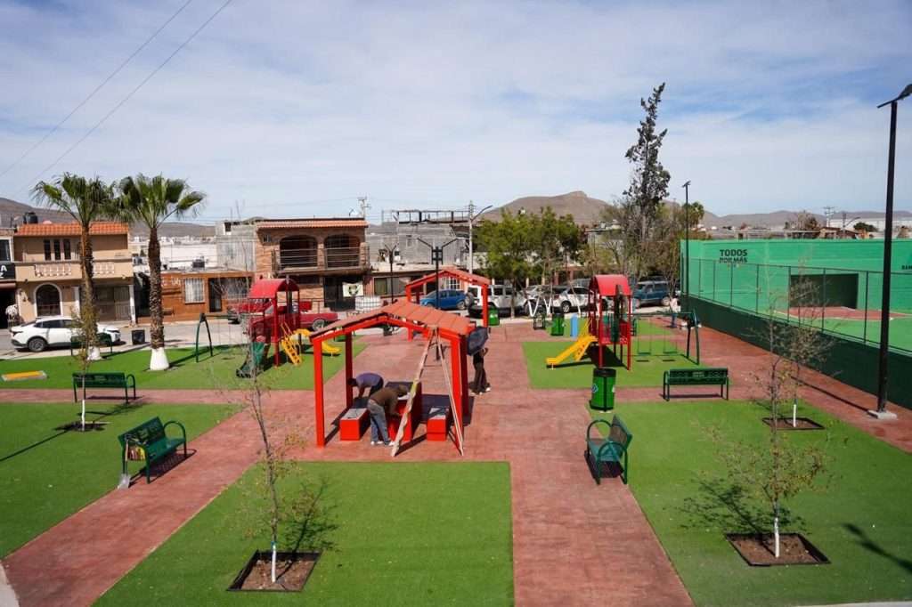 Ramos Arizpe.– Tomás Gutiérrez Merino, alcalde de la ciudad, en compañía de su esposa Teresita Escalante y junto con Chema Morales Padilla, Administrador Fiscal General, entregó a las y los vecinos de la colonia Fidel Velázquez la Plaza Emilio Carranza, tras concluir una rehabilitación integral que permitirá contar con un espacio digno, seguro y funcional para la convivencia familiar, el deporte y las actividades comunitarias.