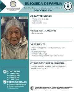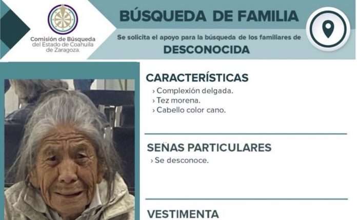 Saltillo.– A través de una publicación oficial en plataformas digitales, autoridades y colectivos dedicados a la búsqueda de personas emitieron un exhorto a la comunidad para contribuir en la identificación de una mujer que no ha sido reconocida y cuyos familiares no han sido localizados.