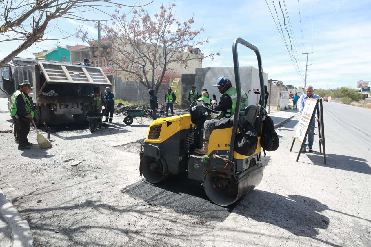 De manera simultánea, personal de la Dirección de Infraestructura y Obra Pública continúa sus labores de reparación sobre la avenida María del Socorro F. de C., entre el bulevar Isidro López Zertuche y la calle 18, del fraccionamiento Las Brisas, al norte de Saltillo.