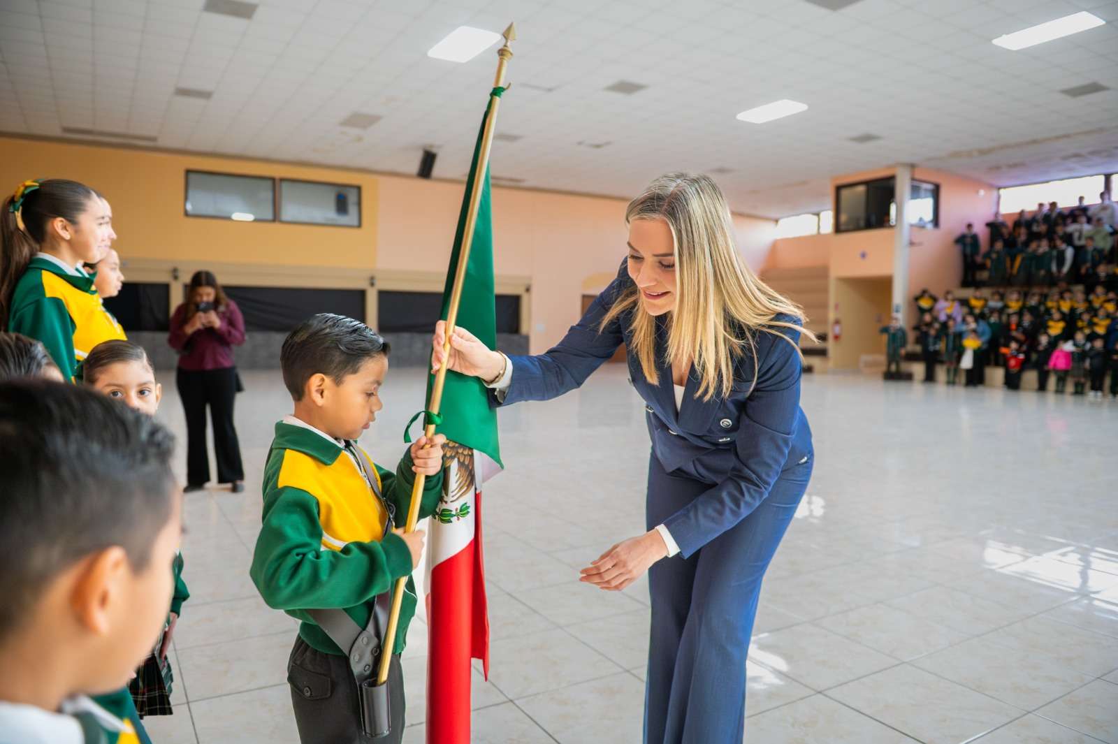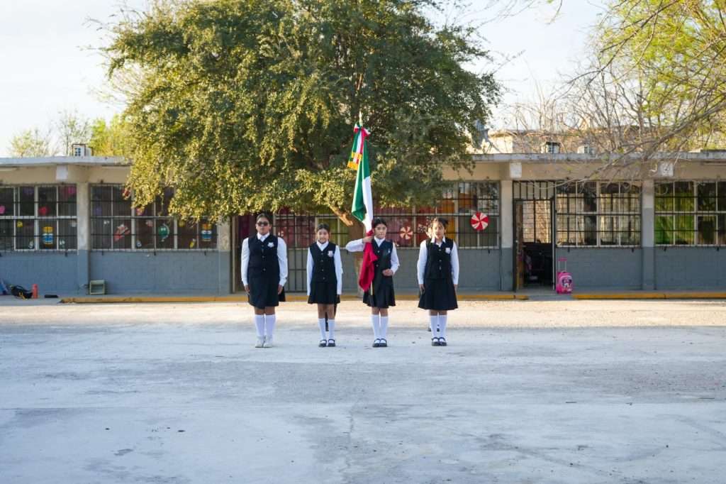 Asimismo, de manera simultánea, regidores y directores municipales entregaron banderas en las escuelas Frida Kahlo T.V., Instituto Capsi, Instituto Jean Piaget, Instituto Moisés Sáenz y en la primaria Octavio Paz T.V. De igual manera, la actividad se llevó a cabo en Presidente Francisco I. Madero, en el Colegio La Fe, en la Enrique Cárdenas García, en las escuelas José R. Mijares T.V., Francisco P. Estrada, José Manuel Maldonado Maldonado T.V. y, por último, en la primaria Prof. José R. Mijares Valdés TM, acciones que fortalecen el compromiso de la administración municipal con la formación cívica de niñas y niños de Piedras Negras.