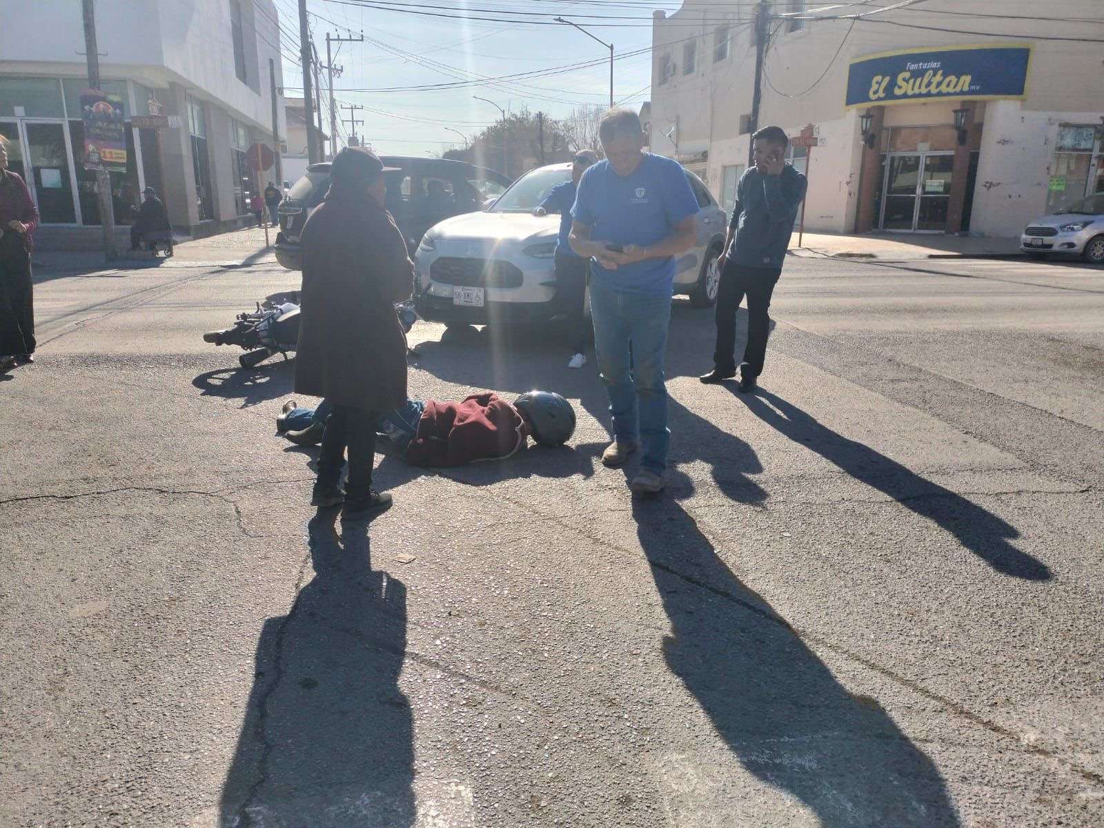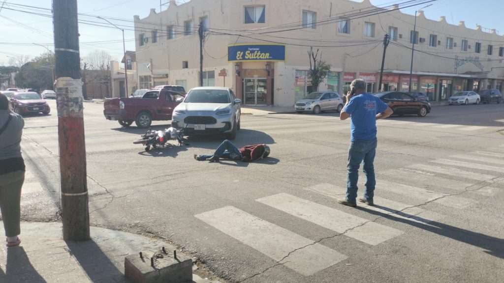 En el percance participaron una camioneta marca Honda y una motocicleta. Tras el impacto, la unidad ligera quedó sobre el pavimento, mientras que su conductor terminó tendido sobre el concreto.