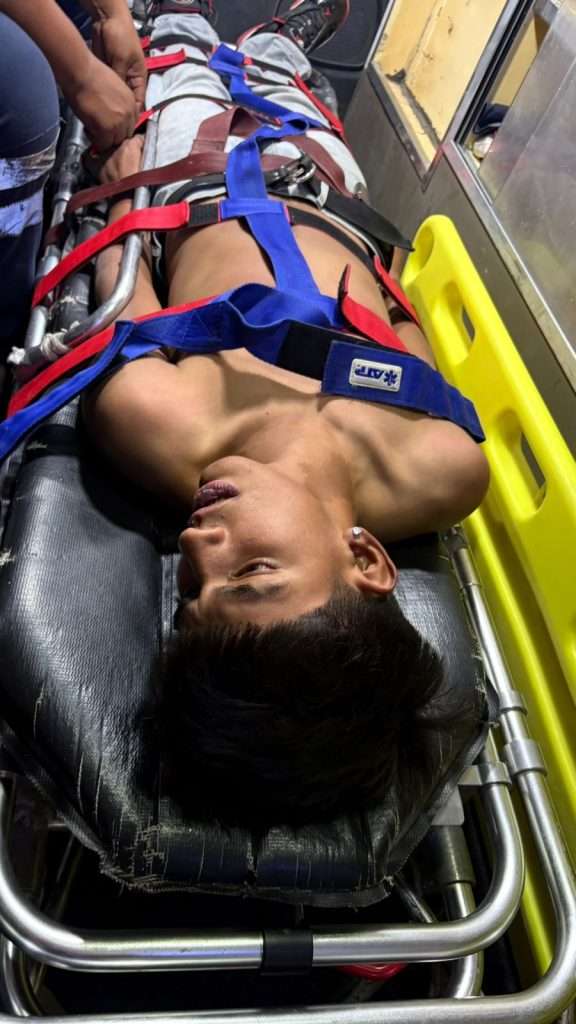 Los elementos del Grupo de Rescate y Urgencias Médicas (GRUM) actuaron con rapidez, logrando mantener con vida al joven mientras era conducido hacia atención especializada.