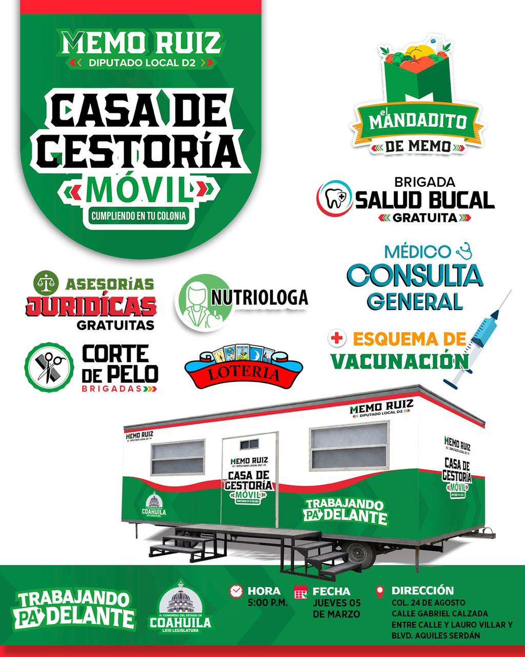 Como parte de su compromiso de mantenerse cercano a la ciudadanía y llevar servicios directamente a las colonias, el diputado local Guillermo Ruiz Guerra anunció la realización de una nueva brigada a través de su Casa de Gestoría Móvil, la cual se llevará a cabo este próximo jueves 5 de marzo en la colonia 24 de Agosto.