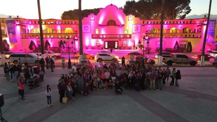 Ramos Arizpe.– La tarde de este lunes, autoridades municipales y ciudadanía realizaron el encendido de luces en la Plaza Principal y la Presidencia Municipal, como acto simbólico por el Día Internacional de la Mujer (8M).