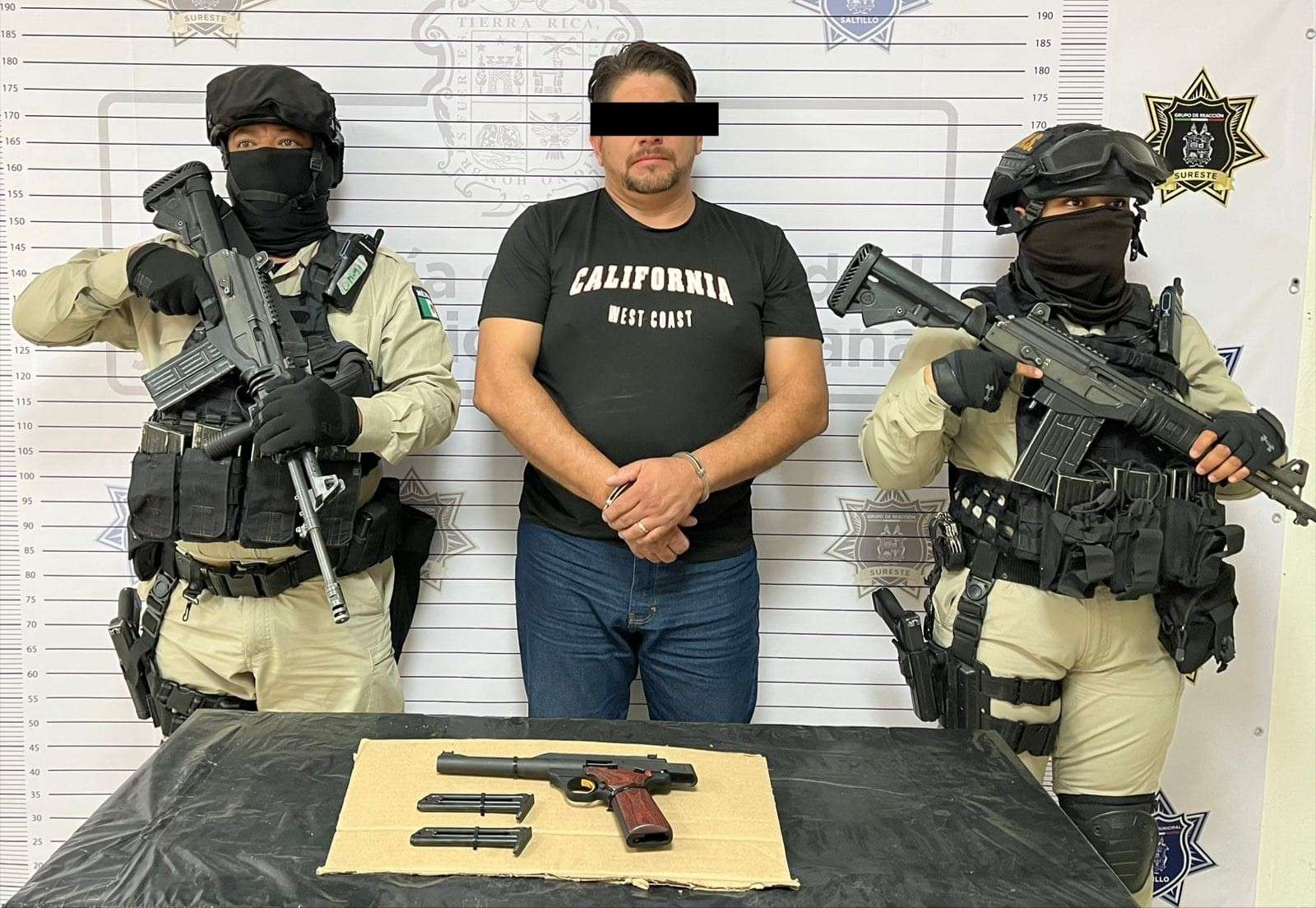 Las investigaciones llevaron a la detención, en la misma colonia Lomas de Lourdes, de Abner Abinadab “N”, de 44 años de edad, a quien además se le aseguró un arma tipo escuadra calibre .22, marca Browning, así como dos cargadores.