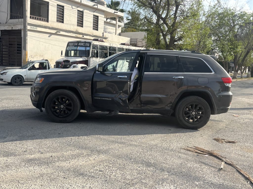 La camioneta era conducida por la señora Josefina, quien no pudo evitar el impacto, quedando ambos vehículos atravesados sobre la calle Porfirio Díaz tras el choque.