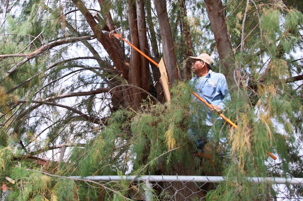 Las labores incluyeron limpieza general de las áreas exteriores, retiro de maleza y poda de árboles cuyas ramas representaban un riesgo para los alumnos, contribuyendo así a mejorar las condiciones de seguridad en los planteles.