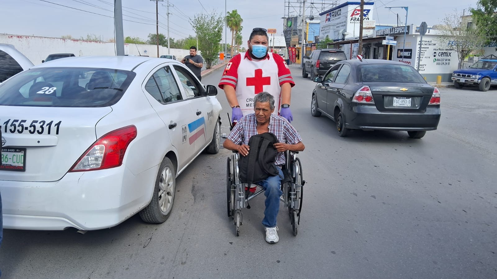 Dulce Chacón de 46 años tuvo que ser atendida por paramédicos de la Cruz Roja luego de sufrir un fuerte golpe en la cabeza tras. Ella viajaba como pasajera a bordo de un taxi que se dirigía hacia Ciudad Frontera cuando ocurrió el impacto que movilizó a cuerpos de emergencia.