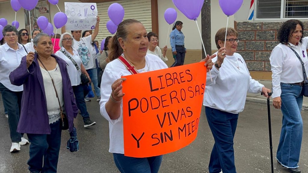 Con el puño en alto y al grito de justicia e igualdad, alrededor de 300 mujeres participaron en la marcha conmemorativa del Día Internacional de la Mujer en Múzquiz. Ellas recorrieron diversas calles del centro de la ciudad para alzar la voz en defensa de sus derechos.