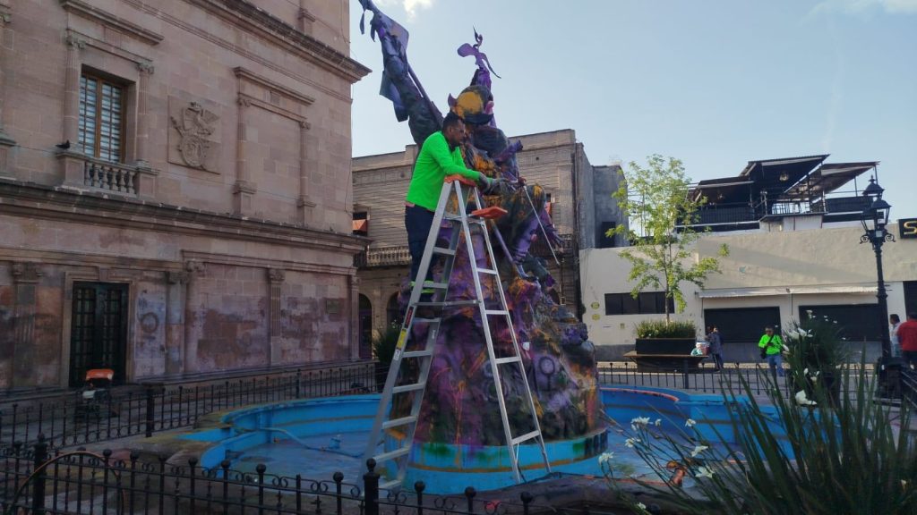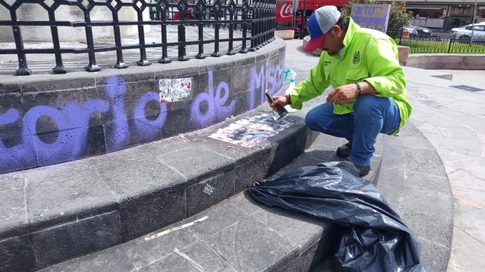 Desde las primeras horas de este lunes 9 de marzo, cuadrillas de la Dirección de Servicios Públicos municipales iniciaron las labores de limpieza y mantenimiento en diversos puntos del Centro Histórico, tras las pintas realizadas durante las movilizaciones del pasado domingo.