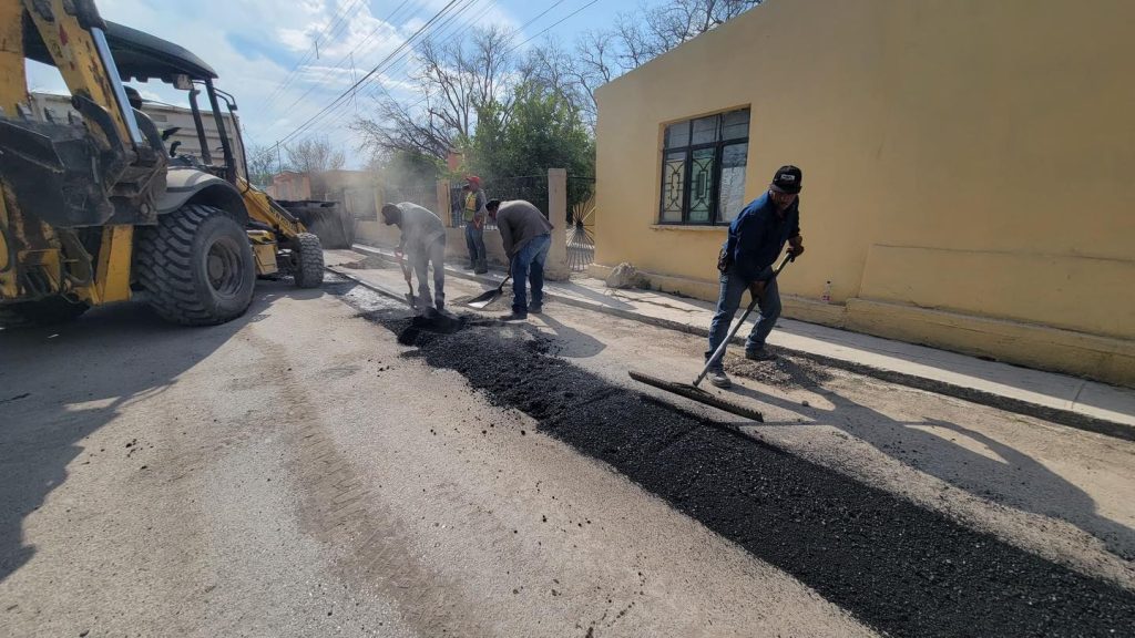 El Gobierno Municipal de Múzquiz, que preside la alcaldesa Laura Jiménez Gutiérrez, en coordinación con SIMARC Múzquiz, lleva a cabo trabajos de bacheo en la calle Colegio Militar. Esto es parte de la conclusión de la obra de instalación de tubería de agua potable.