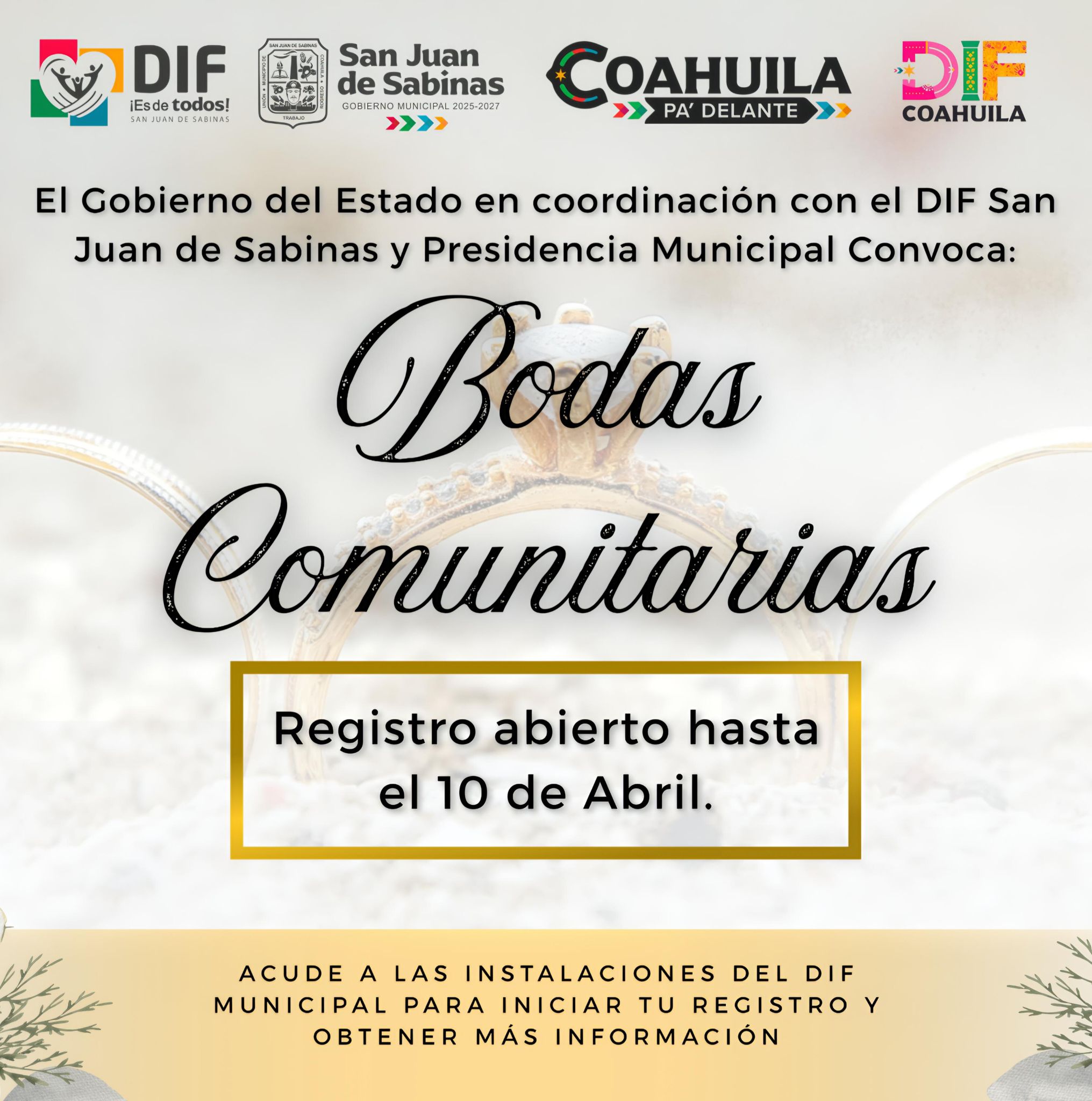 San Juan de Sabinas invita a Bodas Comunitarias 2026