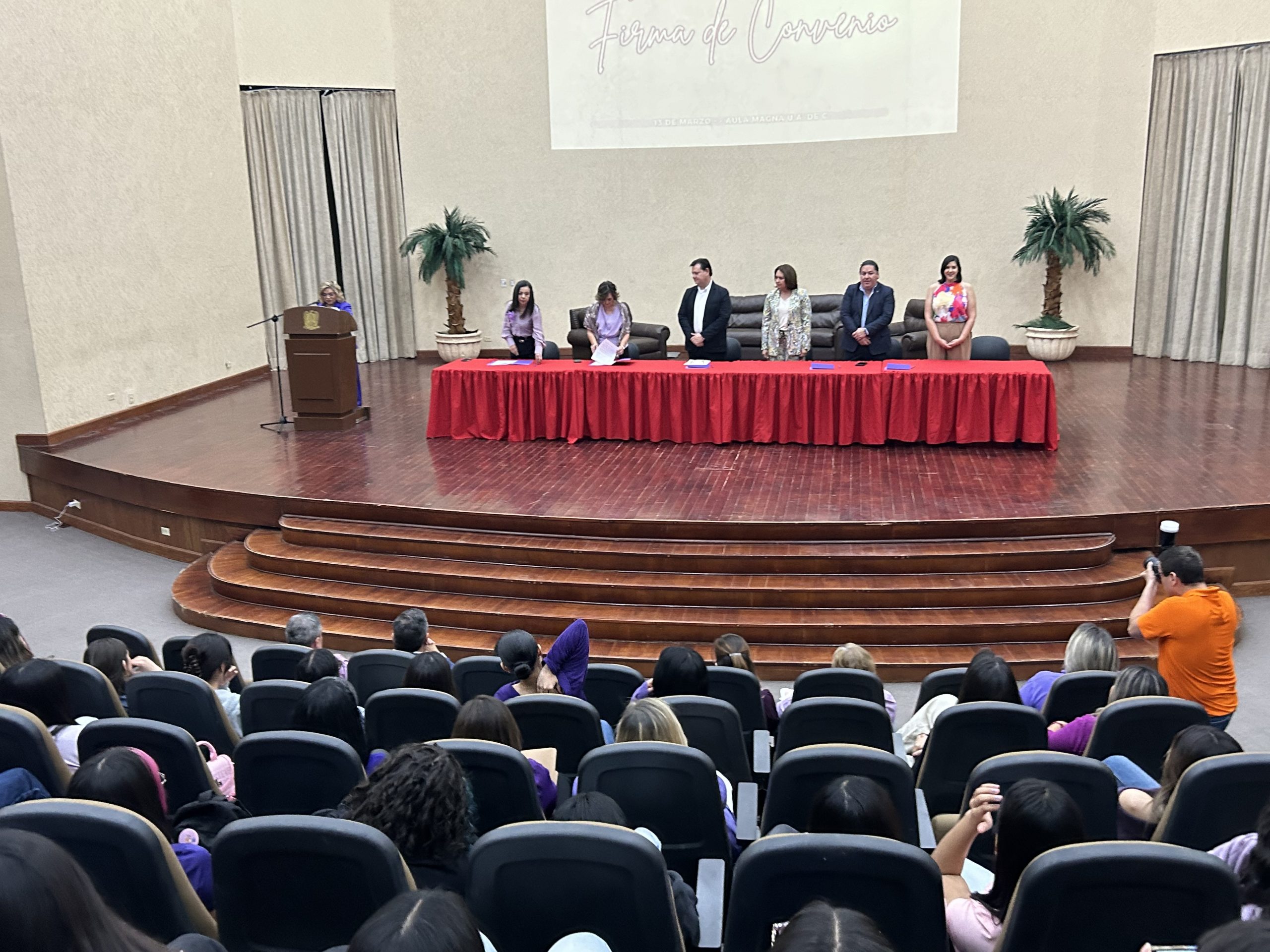 El evento, celebrado en el Aula Magna de la Universidad Autónoma de Coahuila, concluyó con el compromiso de las autoridades y empresarios de dar seguimiento puntual a los acuerdos establecidos en este convenio de colaboración mujeres para transformar la realidad social de Monclova.